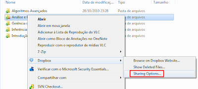 Isso é nada mais nada menos que um atalho que vai ligar seu navegador de internet (espero que seja o Firefox, senão entre já em www.getfirefox.com), entrar no site do do Dropbox e acessar as configurações de compartilhamento da pasta. Tudo isso pode ser feito manualmente pela interface web da sua contra Dropbox.